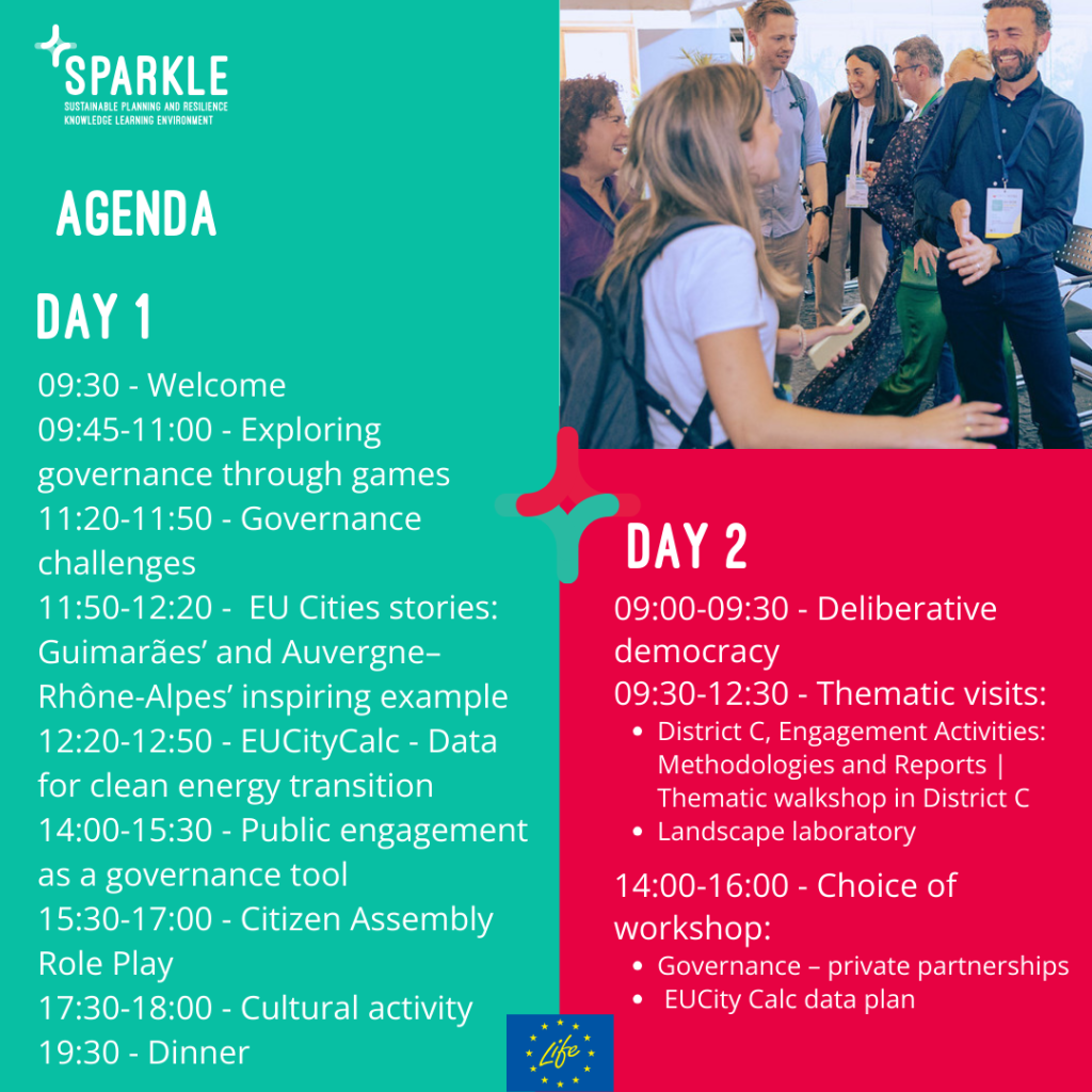 Would you like to be inspired and exchange with pioneering cities that have put citizens at the heart of the energy transition? Then, don’t miss the opportunity to join the SPARKLE School A green transition for all: empowering participatory governance for future-proof cities, taking place on 28–29 April 2026 in Guimarães, Portugal, EU’s Green Capital 2026. Scroll down to discover the agenda and learn how to apply for the fully funded scholarship.